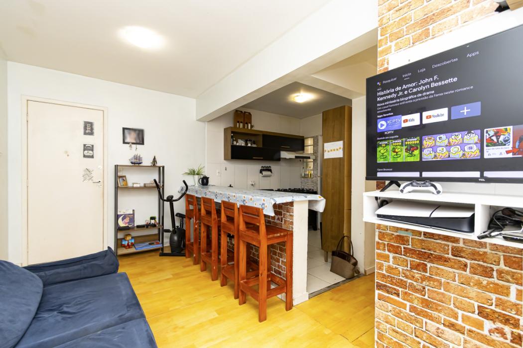 O apartamento consta com: dois quartos, 1 banheiro, sala com dois ambientes e integrados a cozinha, com área de serviço ao lado da cozinha, facilitando o dia a dia. Possui 1 vaga de garagem descoberta, oferecendo comodidade e segurança. Piso vinilico na sala e dormitórios.