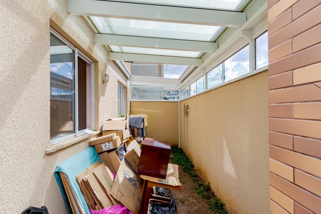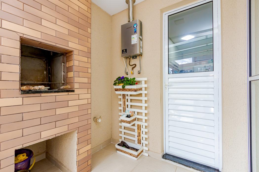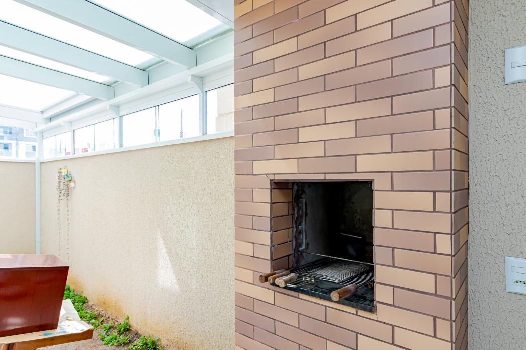 Varanda coberta, com churrasqueira